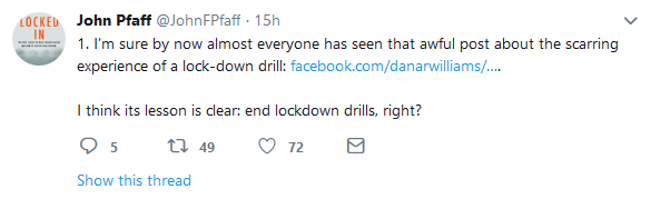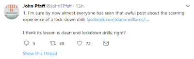 Fordham Law School Professor John Plaff posted a great twitter thread questioning the use of School shooter drills.